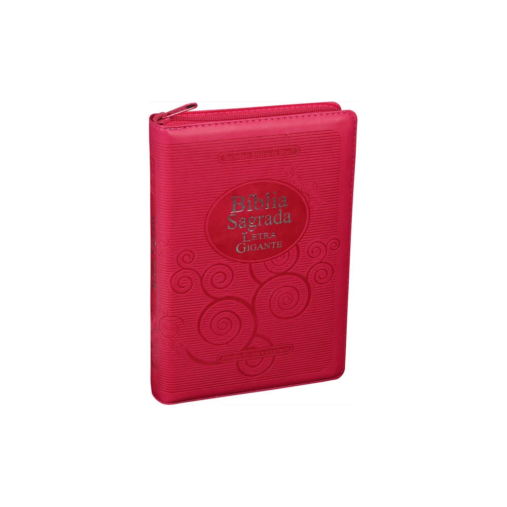 BÍBLIA SAGRADA ARA - CAPA FLEXÍVEL EM COURO, ROSA PINK, LETRA GIGANTE, COM ZÍPER